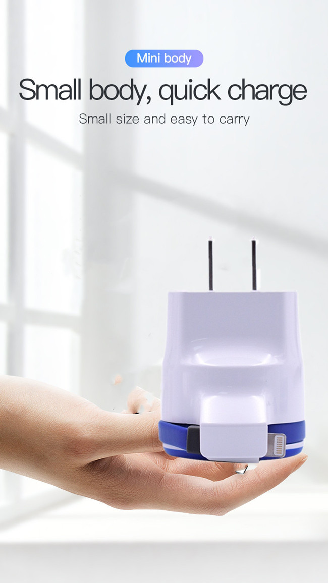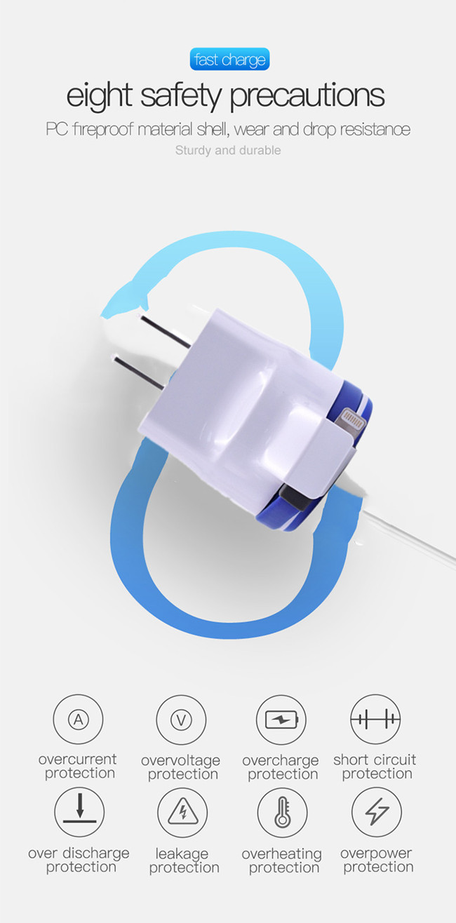 QC3.0 WALL CHARGER 18W QC Fast Charging Adapter DUAL USB Quick Charge Wall Charger Adapter Fast Charging Built in USB lighting Type C cable