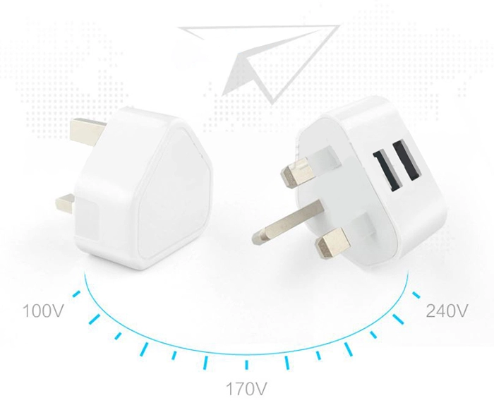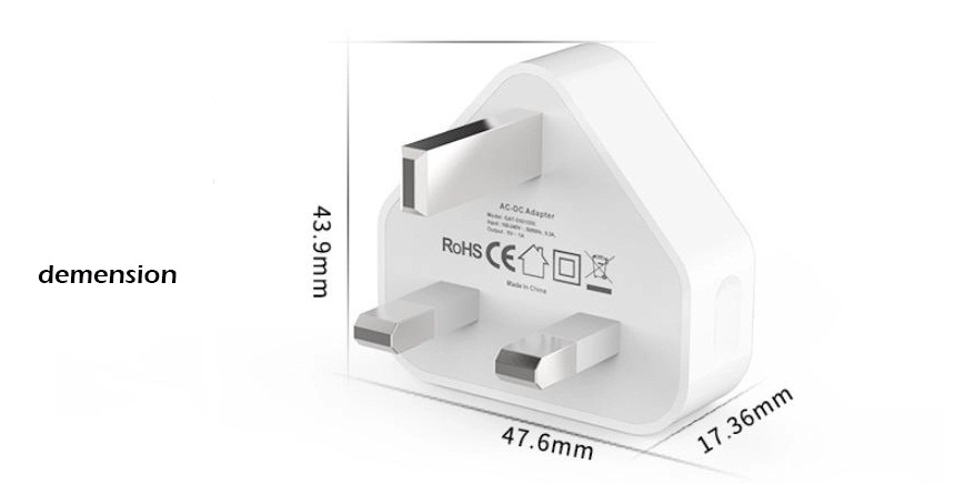 3 Pin UK mains charger with dual USB fit for phones, tablets,kindle, iPad,bluetooth headphones and all USB powered devices.Automatically detect and provide  optimal charging current for connected devices,maximizes charging efficiency,ensure the fastest, safest and most efficient charging experience.