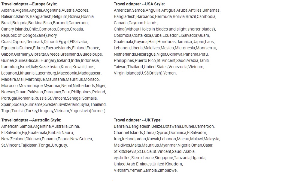 INTERNATIONAL COMPATIBILITY – Our Universal Plug Adapter offers superior compatibility with more than 200 countries. Fits electrical outlets in most commonly visited countries including France, Europe, USA, UK, Canada, Brazil, Argentina, Ireland, Italy, Turkey, Greece, Croatia, Australia, New Zealand, Philippines, Fiji, Korea, Hong Kong, China, Vietnam, Mongolia, Indonesia, Middle East, Ghana and Botswana etc.