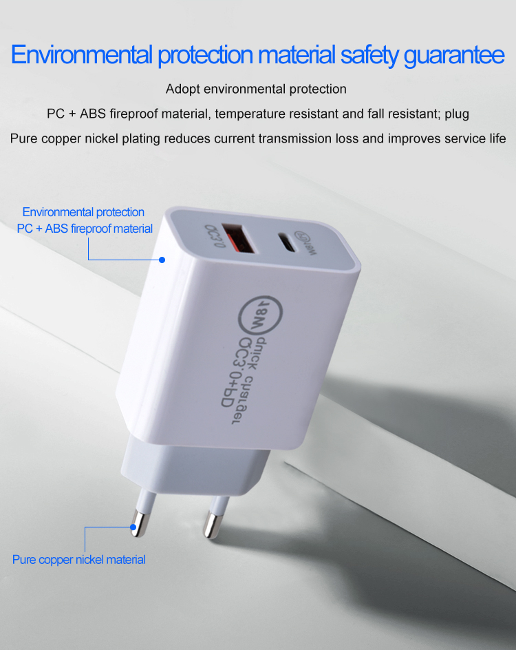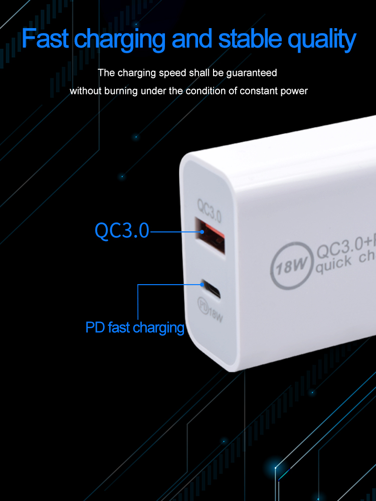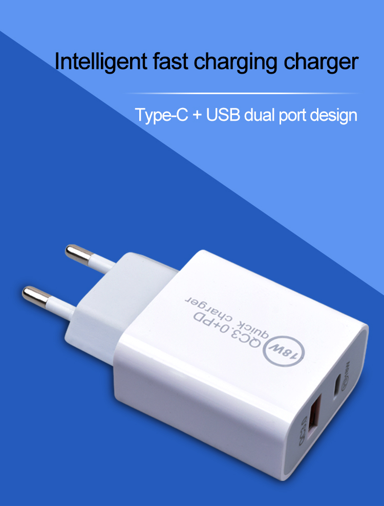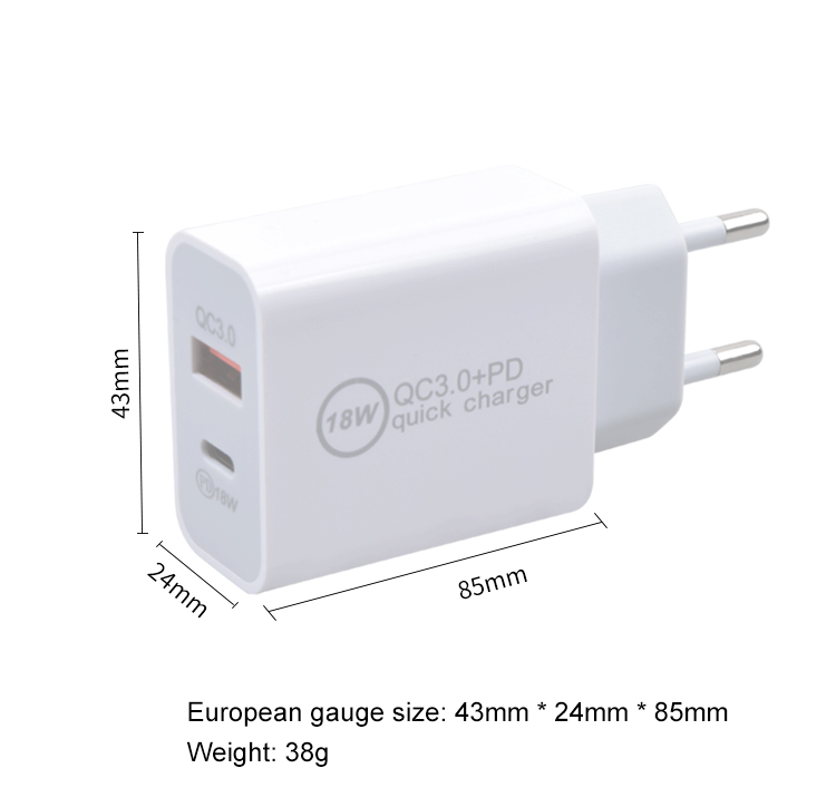 USB C PD Charger Adapter Plug USB C Wall Charger 18W PD QC 3.0 Fast Wall Charger for i Phone 12/12 Pro Max/12 Mini Dual Port Travel Adapter with USB & Type-C Ports